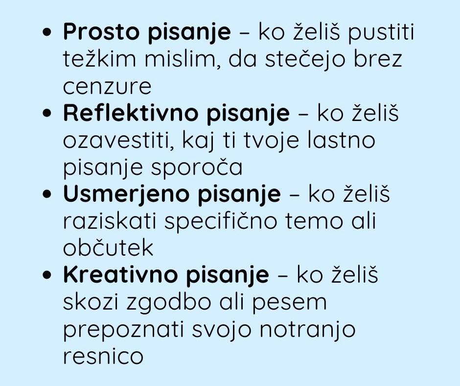 Pisanje postane tvoj varen prostor. Prostor za: